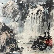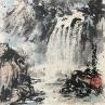 Painting Waterfall by Yu Huan Huan | Painting Figurative Landscapes Black & White Ink
