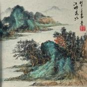 This unique and original contemporary artwork "Distant mountains by the river" on the subject of Landscapes has been created by the contemporary artist Yu Huan Huan.