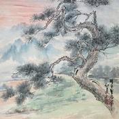 This unique and original contemporary artwork "Pine II" on the subjects of Landscapes, Nature has been created by the contemporary artist Yu Huan Huan.