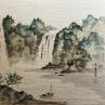 Boat and waterfallPainting Boat and waterfall by Du Mingxuan | Painting Figurative Landscapes Watercolor Ink