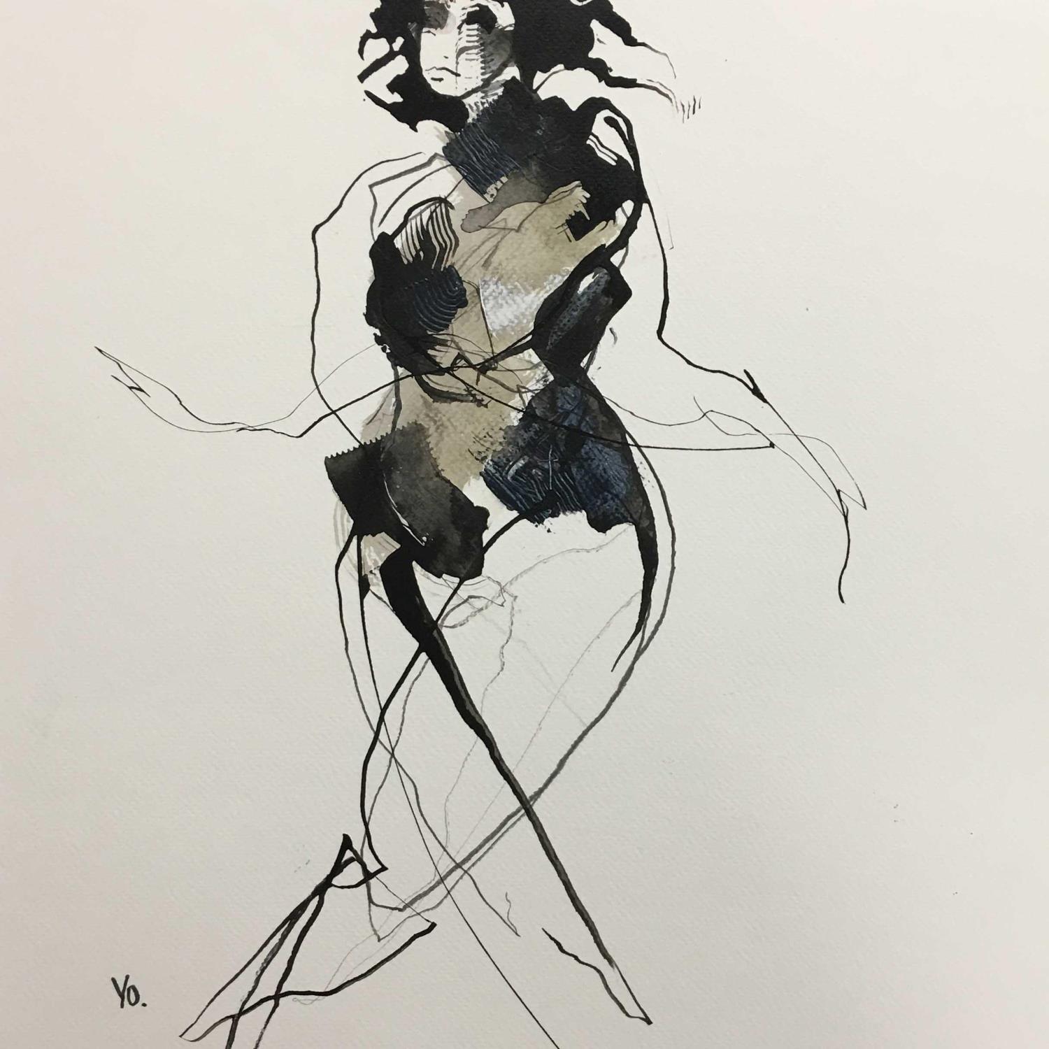 Yo was born and raised in the Paris region in a family where art and design were important. The stroke of a pen from her father fascinated her and drawing competitions were held regularly at home. Very soon she was acquainted with the human figure. Her father, passionate about the poster artists, illustrators and cartoonists of the twentieth century, transmitted this interest to her. After law school, she worked as a lawyer for ten years while attending workshops sponsored by the city of Paris. In 2001, she left her salaried work to attend the Versailles School of Fine Arts, where she was devoted entirely to her passion: live models. This form of expression fascinated her and allowed her to tell stories. The body is an anchor in her work. It is the singular envelope of emotions and moods. Yo combines her energy and that of her models, drawing with instinct and precision the movements and attitudes of the body.