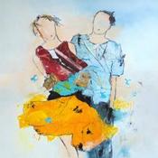 This unique and original contemporary artwork "ADELICE ET SON HOMME" on the subject of Portrait has been created by the contemporary artist Han.