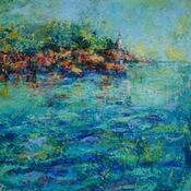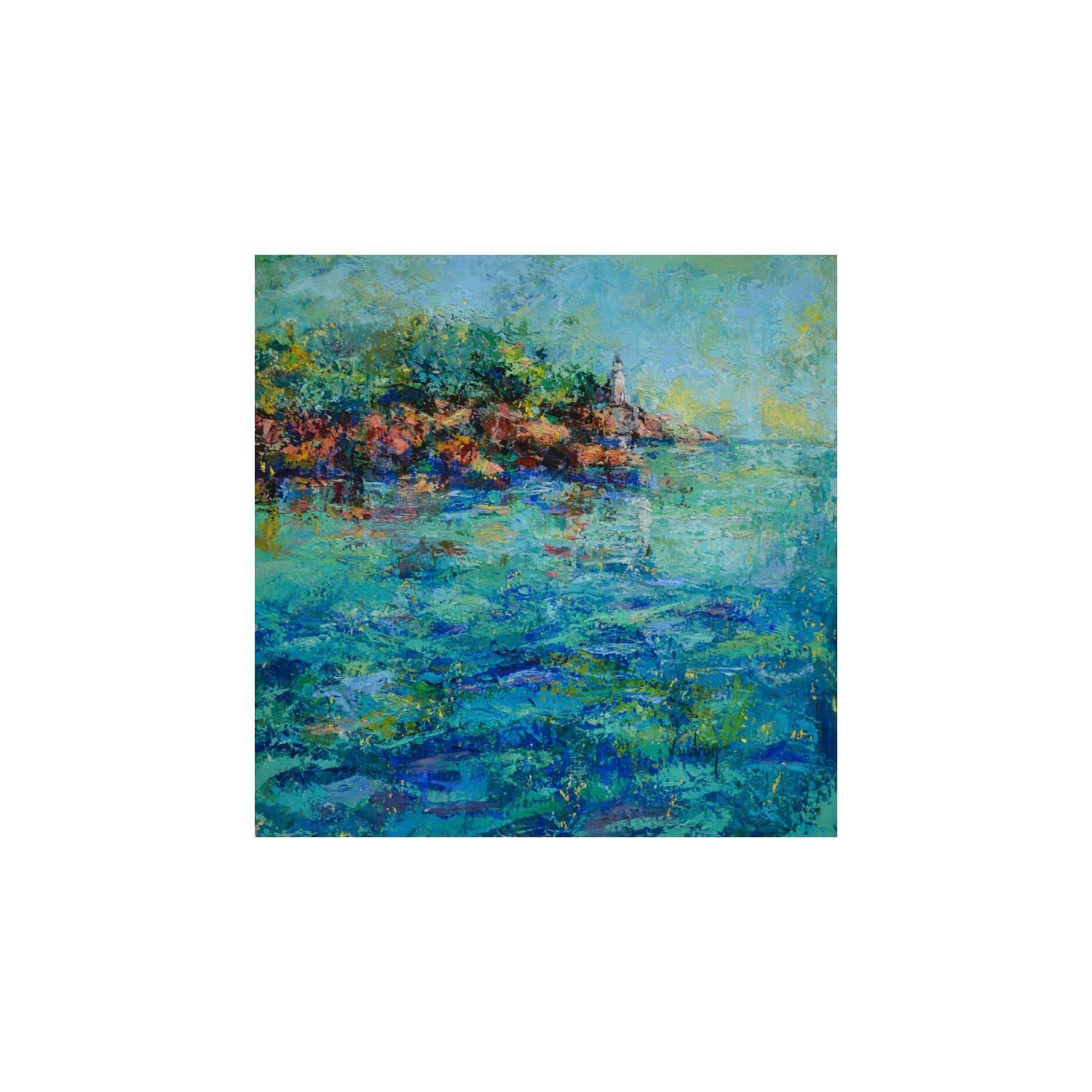 The contemporary artwork La balise du phare is a modern painting from the artist Catherine Vaudron. This is a contemporary painting, unique and originale, Landscape style.