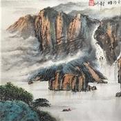 This unique and original contemporary artwork "Fishing spirit" on the subject of Landscapes has been created by the contemporary artist Yu Huan Huan.