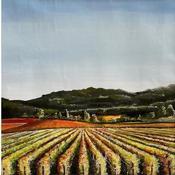 This unique and original contemporary artwork "Les vignes d'automne en Bourgogne" on the subjects of Landscapes, Urban, Life style has been created by the contemporary artist Touras Sophie-Kim .