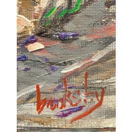 This unique and original contemporary artwork "Glicine sur la veille porte en Provence" was created by contemporary artist Brooksby.