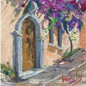 During her 21 years in Italy, the artist spent years painting Italian balconies and windows. Today, she lives on the Côte d'Azur and enjoys painting in old villages.