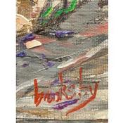 The artist used oil on canvas and graphite to create this small-format painting in a semi-Figurative style.