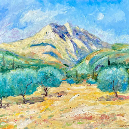 Champ de coquelicots au pied de la montagne Sainte-Victoire