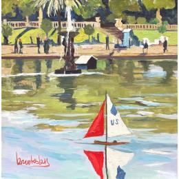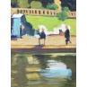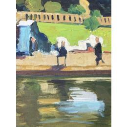 The artist used Oil painting on canvas to create this semi-abstract Figurative, Small size painting of the Luxembourg Gardens in Paris.