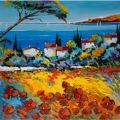 This unique and original contemporary artwork "Coquelicots dans la baie" on the subjects of Landscapes, Marine has been created by the contemporary artist Cédanne.