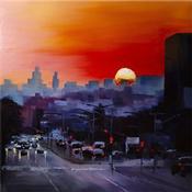 This unique and original contemporary artwork "American sunset" on the subject of Landscapes has been created by the contemporary artist Eugène Romain.