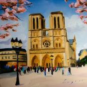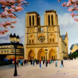 This unique and original contemporary artwork "Cherry trees in Paris" was created by contemporary artist Eugene Romain.