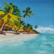 This unique and original contemporary artwork "Plage de palmiers" on the subjects of Landscapes, Marine has been created by the contemporary artist Eugène Romain.