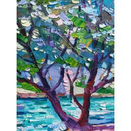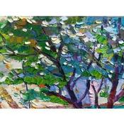 The artist used the oil technique to create this small-format painting on canvas in the figurative style on the theme of Landscapes.