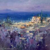 This unique and original contemporary artwork "The smell of lavender" on the subject of Landscapes has been created by the contemporary artist Petras Ivica.