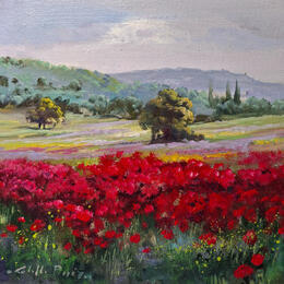 This unique and original contemporary artwork "Amapolas en verano" on the subject of Landscapes has been created by the contemporary artist Cabello Ruiz Jose.