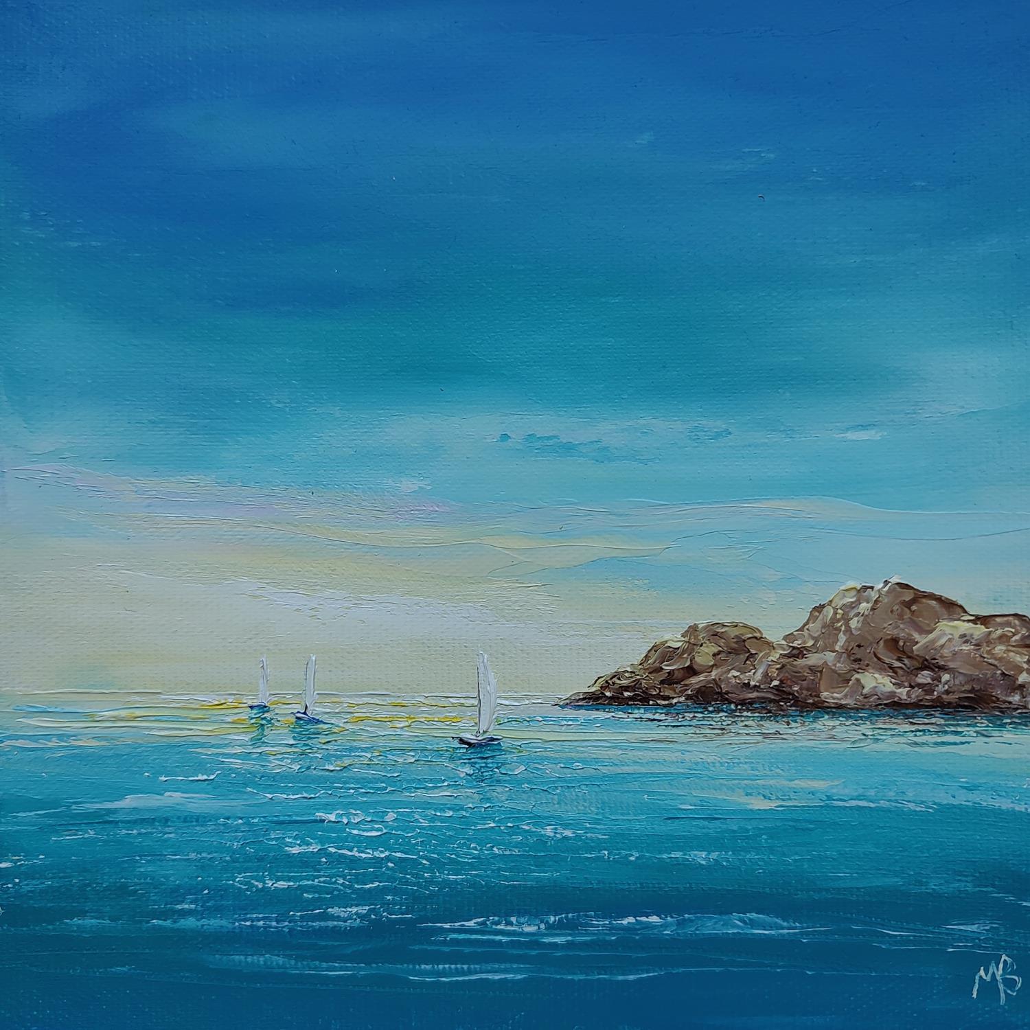 This unique and original contemporary artwork "Azuréenne" on the subject of Landscapes has been created by the contemporary artist Blandin Magali.