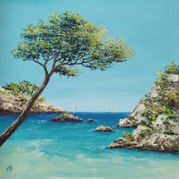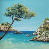 This unique and original contemporary artwork "Méditation dans les calanques" on the subject of Landscapes has been created by the contemporary artist Blandin Magali.