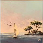 This unique and original contemporary artwork "Retour de pêche" on the subject of Landscapes has been created by the contemporary artist Blandin Magali.