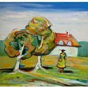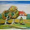 The artist used Oil medium on Canvas to create this Figurative, Small size painting.