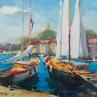 This unique and original contemporary artwork "The port of Cannes" on the subjects of Marine, Landscapes has been created by the contemporary artist Joro.