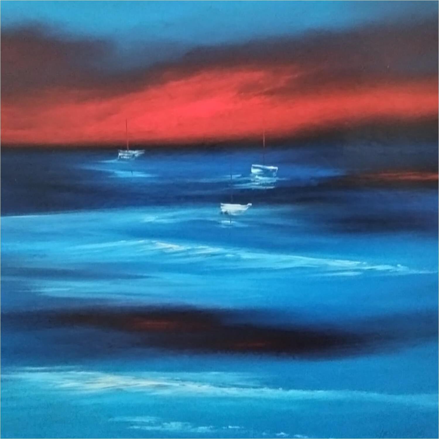 This unique and original contemporary artwork "Ambiance nocturne " on the subject of Marine has been created by the contemporary artist Le Guével Frédéric .