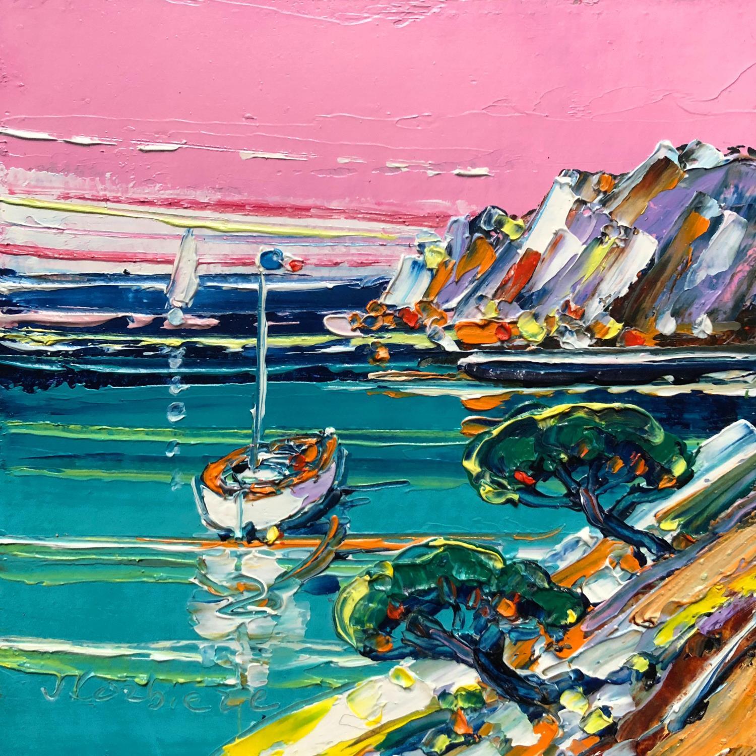 This unique and original contemporary artwork "La calanque Bleue" on the subjects of Marine, Landscapes has been created by the contemporary artist Corbière Liisa.