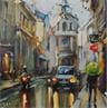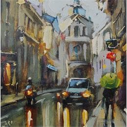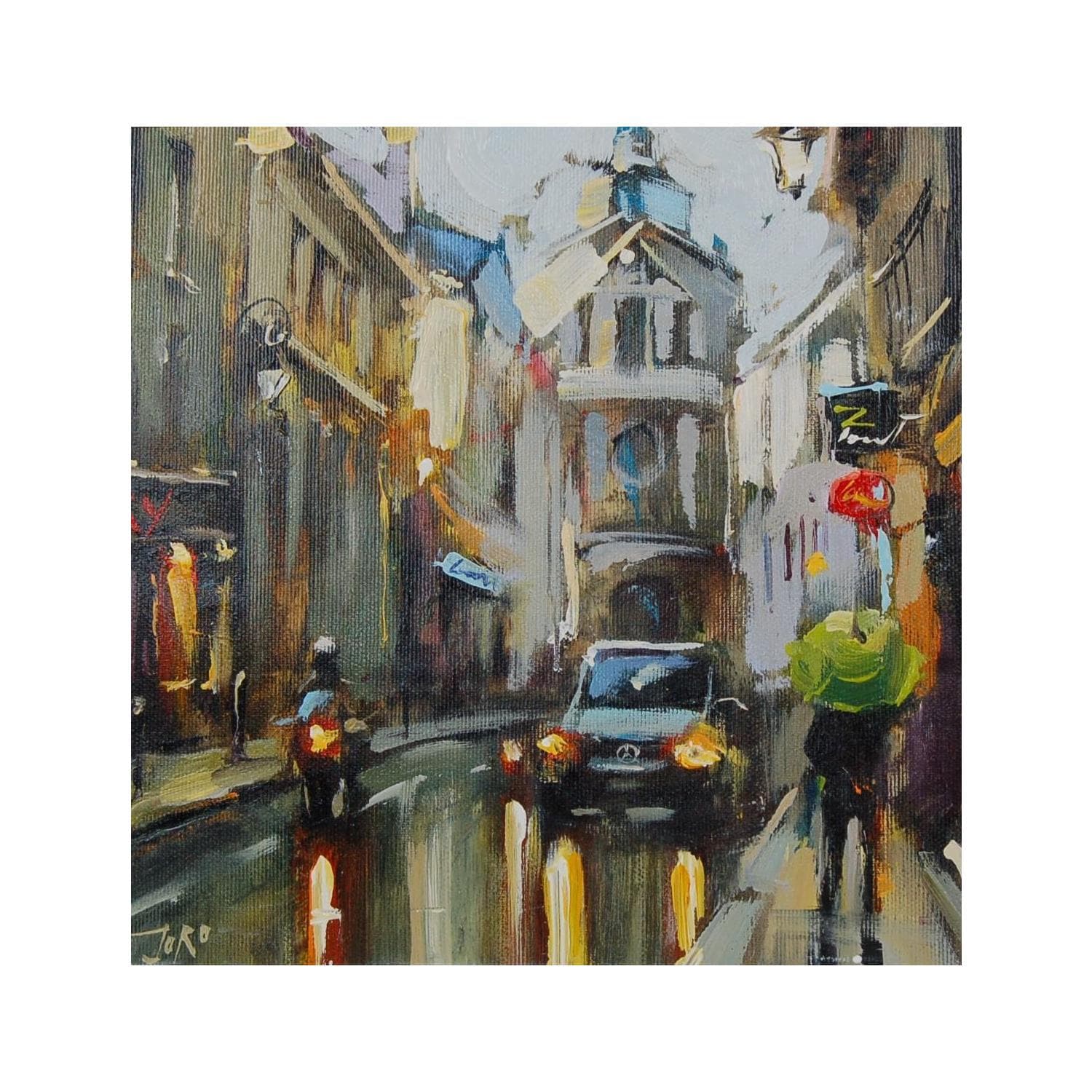 This unique and original contemporary artwork "Rainy street" on the subject of Urban has been created by the contemporary artist Joro.
