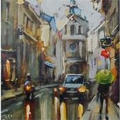 Rainy streetPainting Rainy street by Joro | Painting Figurative Urban Oil