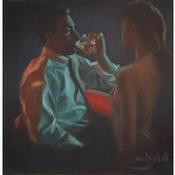 The artist used Oil medium on Canvas to create this Figurative, Small size painting.