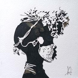Valentine Louafi has always been fascinated by the play of shadows and lights. During her studies in film she made several short films in which silhouettes come to life. She also wrote and presented her thesis on this topic. After a detour in which she worked as a graphic designer, she decided to devote herself anew to her artistic practice, leaving drawing for paper art. The simplicity of the tools she uses and the subjects that she chooses perfectly align with her anti-consumerist and humanistic values. Her models come from all over the world and she specifically chooses subjects that enable her to question the relative notion of beauty, while also directing the spotlight onto modifications of the body and body-art. Today she is working with the organisation "The Paper Artist" that collaborates with organisations that support the emancipation of women. Curious about other people, she conceives of her canvases as an invitation to discover and create bridges in spite of differences.