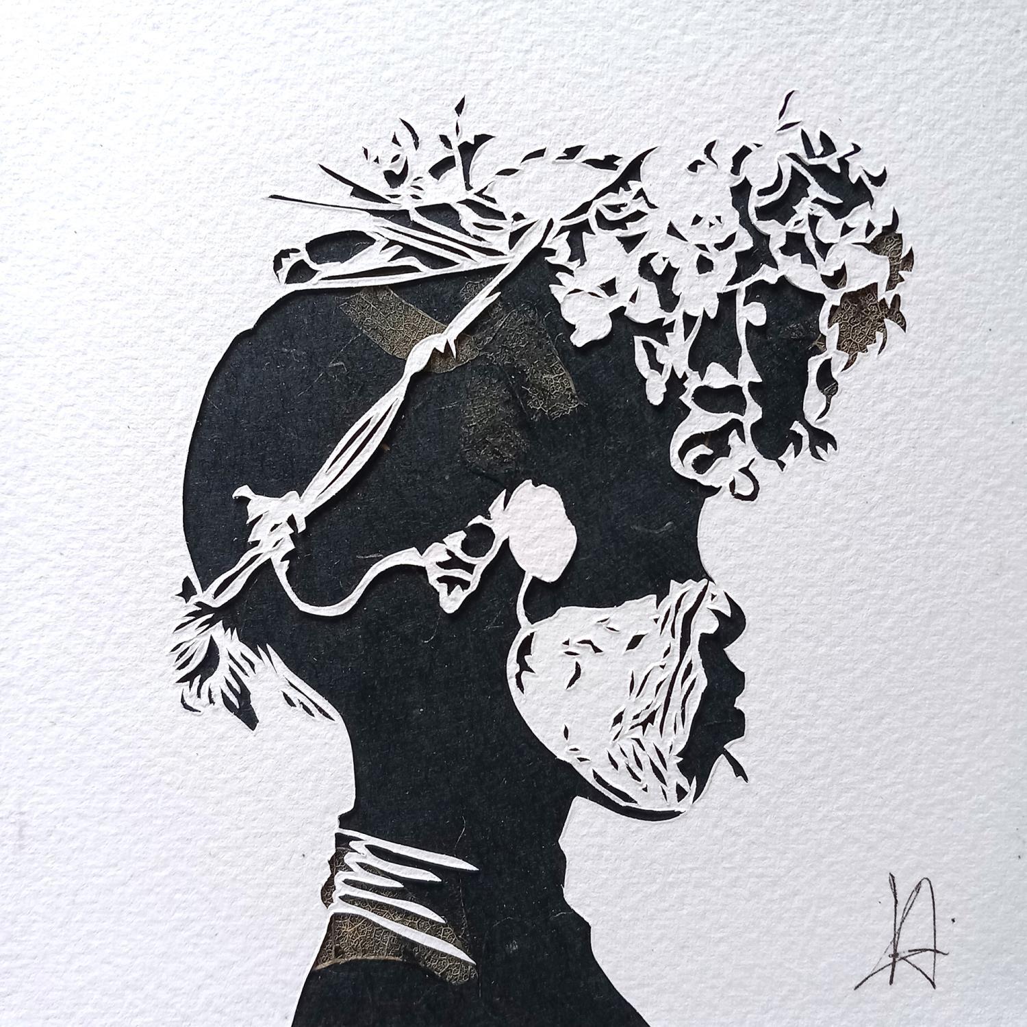 The artist used the paper-cut technique to create this small-format work on Figurative Paper on the theme of Portraits.