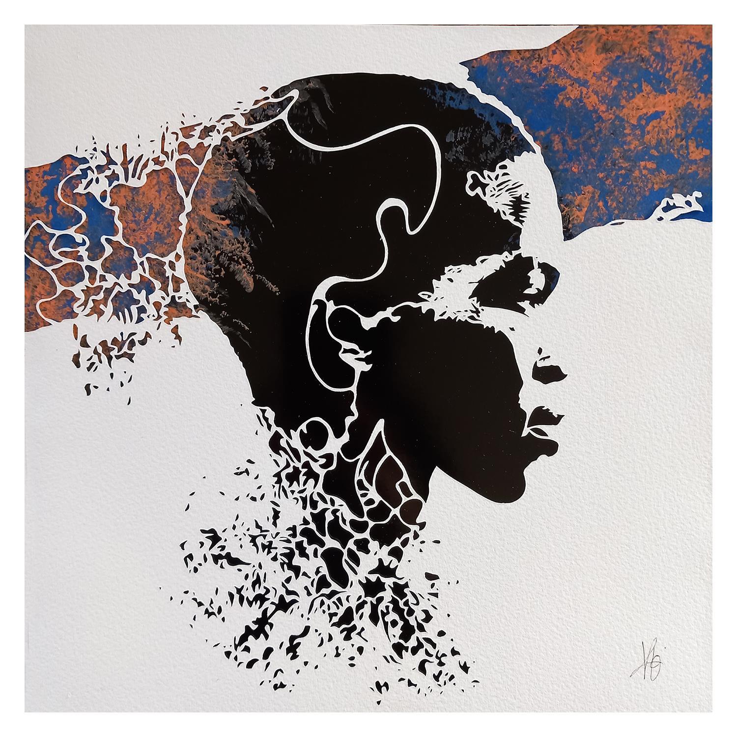 The artist used the paper-cut technique to create this small-format work on Figurative Paper on the theme of Portraits.
