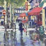 This unique and original contemporary artwork "October Rain" on the subjects of Urban, Life style has been created by the contemporary artist Farren David.