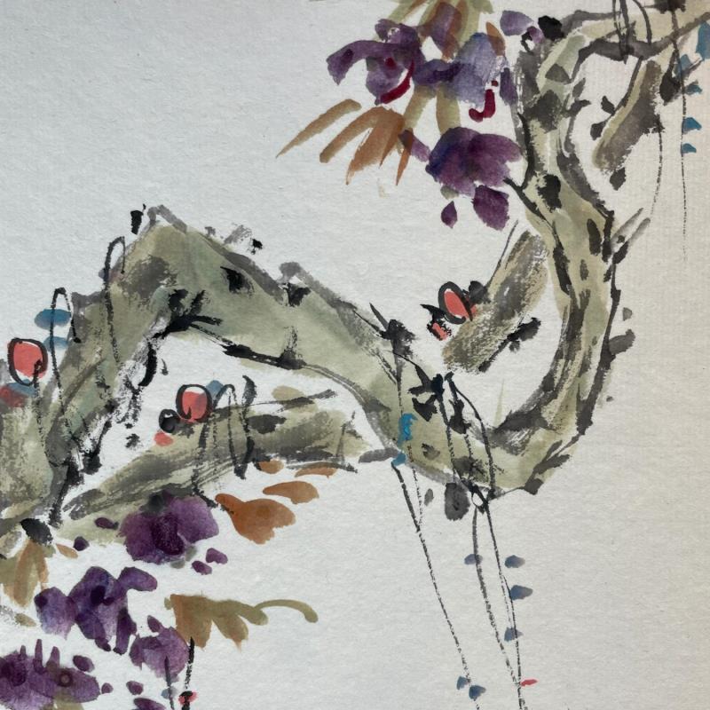 The artist used Watercolor, Ink media on Paper to create this Figurative, Small size painting.