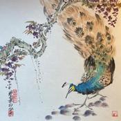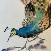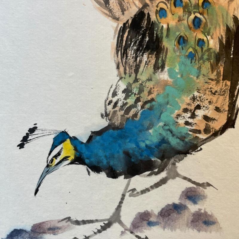 This unique and original contemporary artwork "Peacock" on the subject of Animals has been created by the contemporary artist Yu Huan Huan.