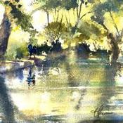 This unique and original contemporary artwork "Marais Lumière" on the subjects of Landscapes, Urban has been created by the contemporary artist Jones Henry.