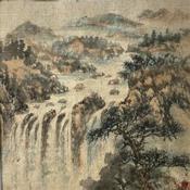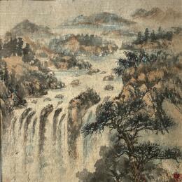 This unique and original contemporary artwork "Waterfall II" on the subject of Landscapes has been created by the contemporary artist Yu Huan Huan.