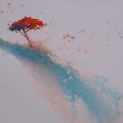 This unique and original contemporary artwork "Un pin sur une prairie turquoise" was created by contemporary artist Langeron Stéphane.