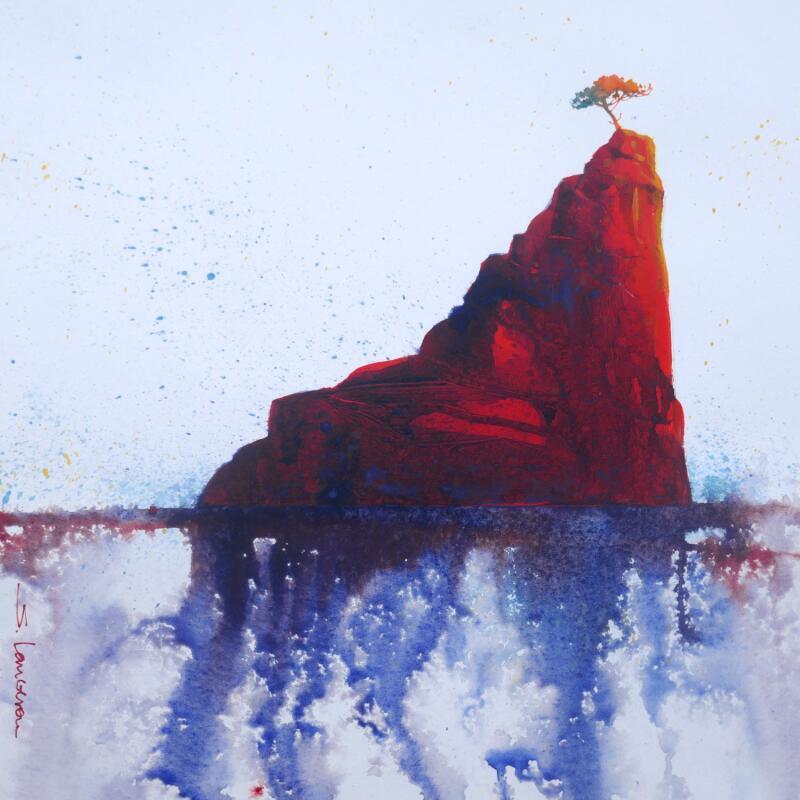 This unique and original contemporary artwork "Un pin sur le rocher" was created by contemporary artist Langeron Stéphane.