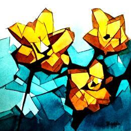Fleurs 1 (bleu)Painting Fleurs 1 (bleu) by Langlois Jean-Luc | Painting Figurative Nature Watercolor