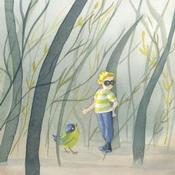 Painting Le copain de la mésange by Marjoline Fleur | Painting Figurative Landscapes Life style Animals Watercolor