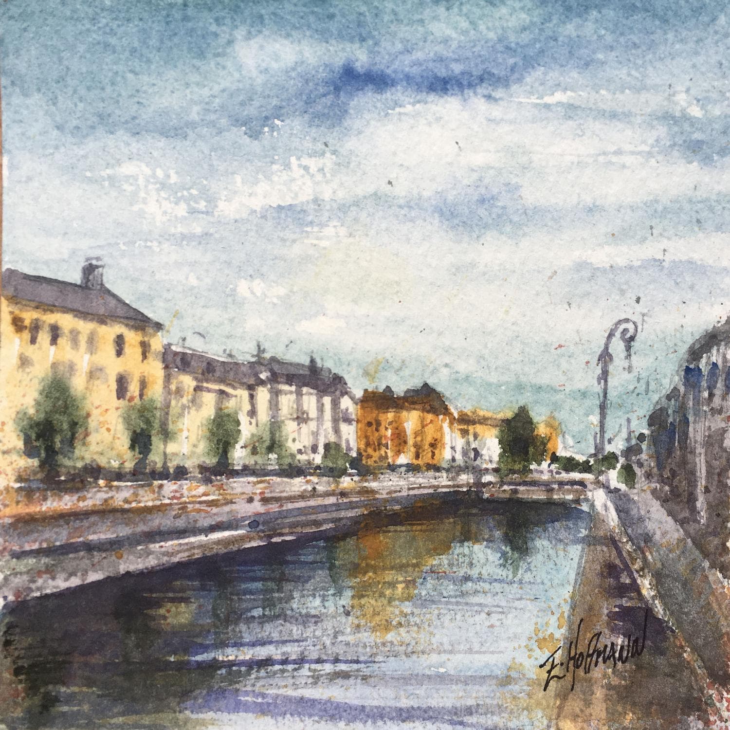 Troyes 83 bords de seinePainting Troyes 83 bords de seine by Hoffmann Elisabeth | Painting Figurative Urban Watercolor