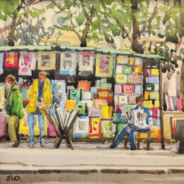 Paris, Les bouquinistes à Notre Dame.Painting Paris, Les bouquinistes à Notre Dame. by Decoudun Jean charles | Painting Figurative Urban Watercolor