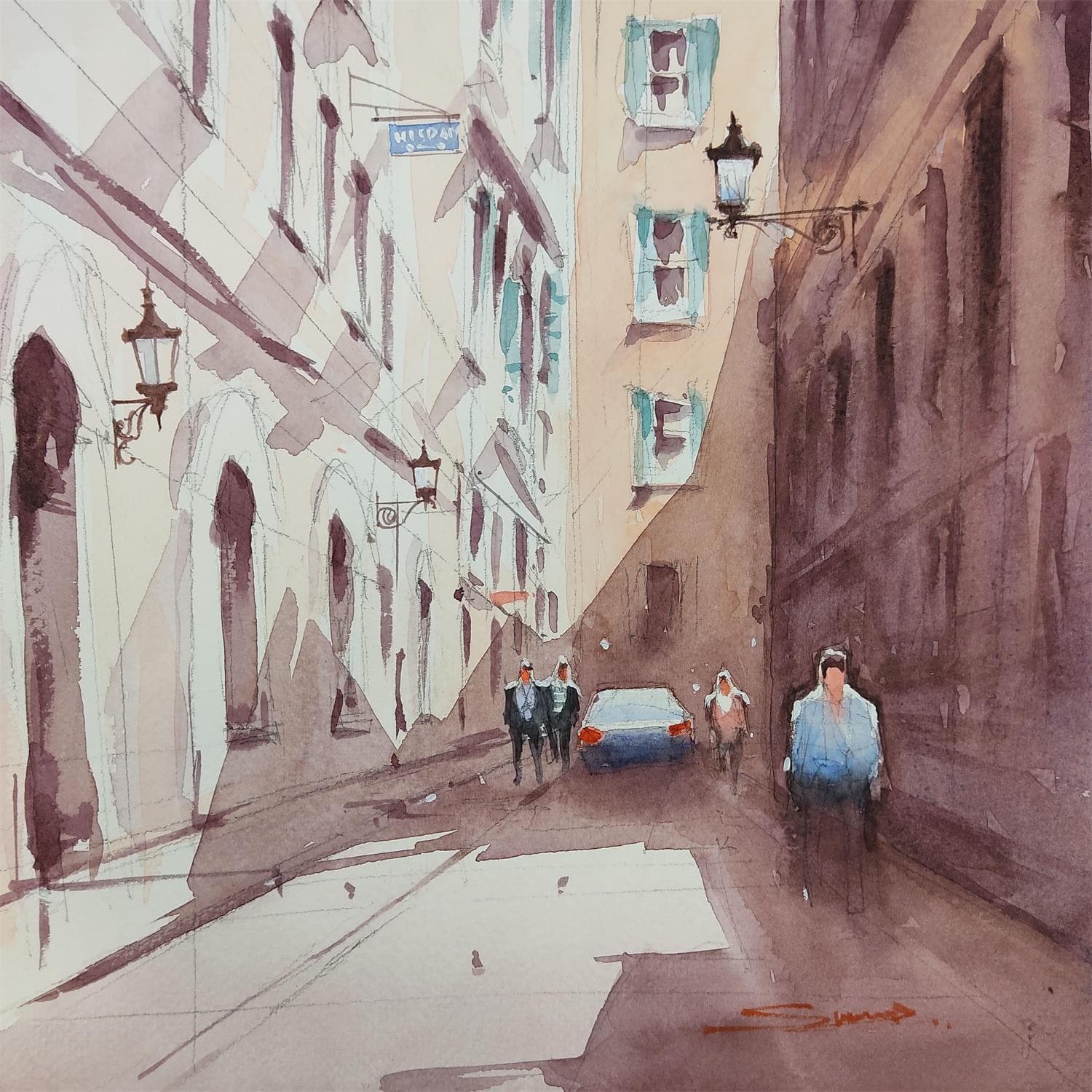 Painting Paris alley by Dandapat Swarup | Painting Figurative Urban Watercolor
