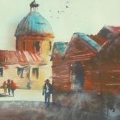 Painting Le raccourci du Dôme by Abbatucci Violaine | Painting Figurative Watercolor