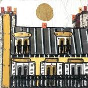 Painting Sous le même toit by Lovisa | Painting Figurative Urban Wood Acrylic Gluing Posca Gold leaf Upcycling