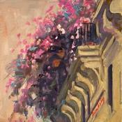 Painting Le Balcon des Roses by Brooksby | Painting Impressionism Architecture Oil