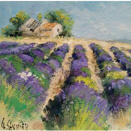 This unique and original contemporary artwork "lavandes et cabanon" on the subject of Landscapes has been created by the contemporary artist Sannier Daniel.